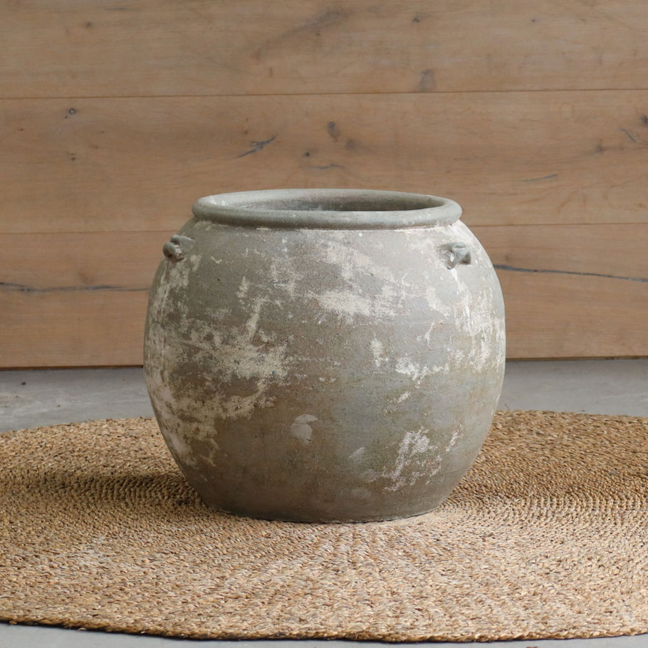 This rustic, round vessel exudes old-world charm with its weathered finish and timeworn texture, making it a soulful accent piece. Style it on a kitchen bench with a bunch of dried herbs or flowering branches to bring a touch of natural elegance and understated warmth to your culinary space.